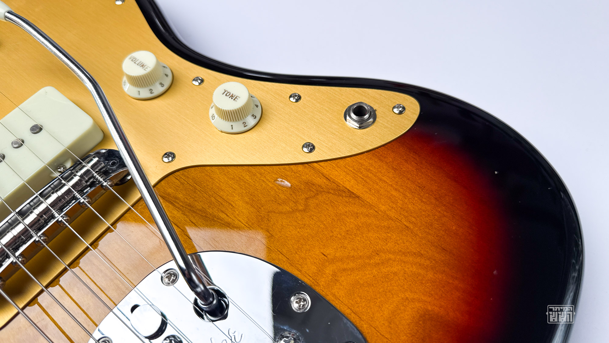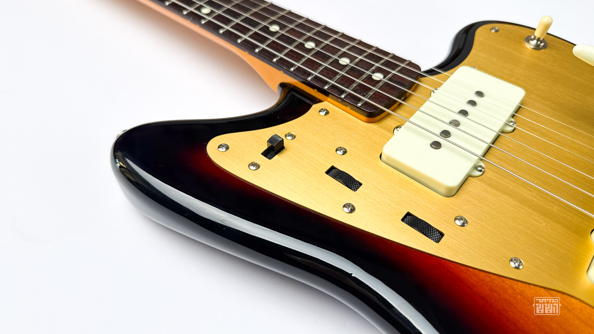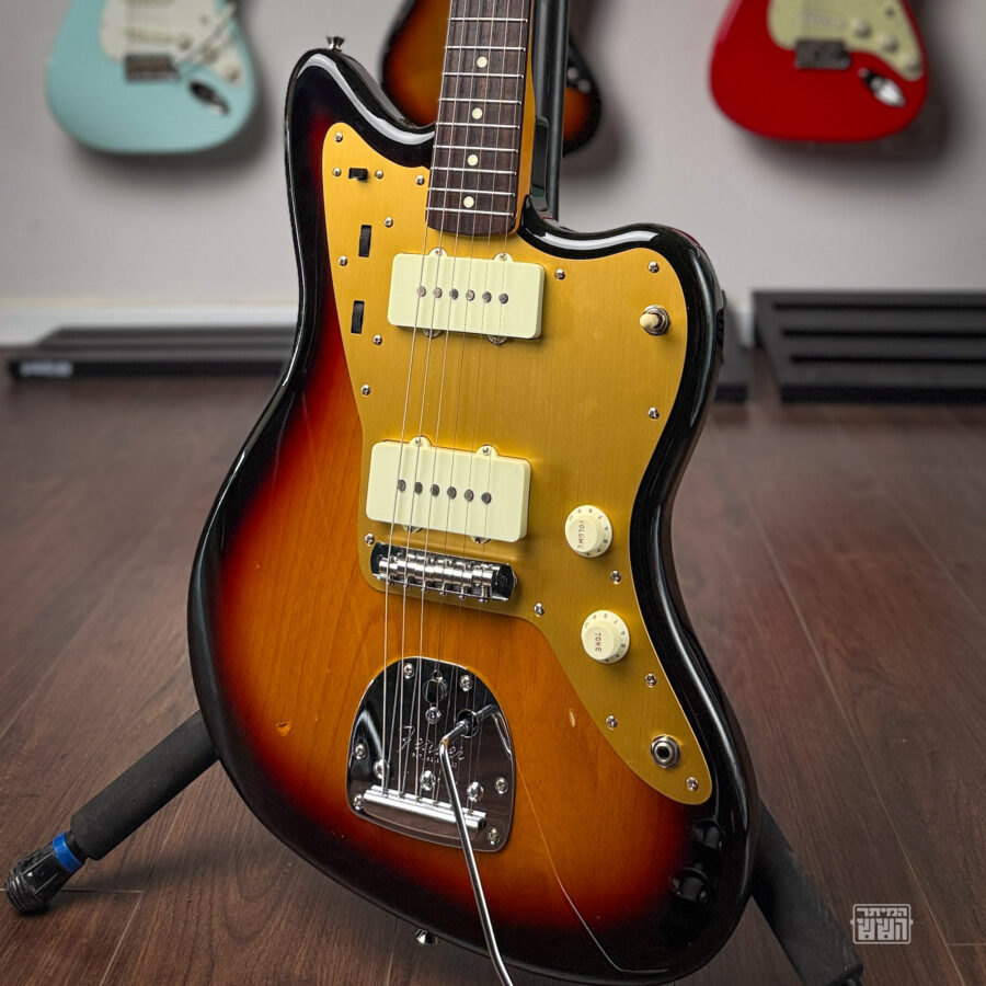 פנדר ג׳אזמאסטר יפנית (יד שנייה) מסדרת ה-Traditional II ביצור ספיצפי לדילרים יפנים (Factory Special Run). הגיטרה מגיעה עם גימור סאנברסט קלאסי, פיקגארד Anodized מתכתי בצבע זהוב, פרטבורד Slab Rosewood נאמן מקור, גשר עם אוכפי מוסטנג ופיקאפים Vintage 65 אמריקאיים. היחידה הזו מגיעה עם איכות בנייה יפנית והמון שדרוגים מהמפעל – אופציה מעולה למי משחפש ג׳אזמאסטר במחיר נגיש.
