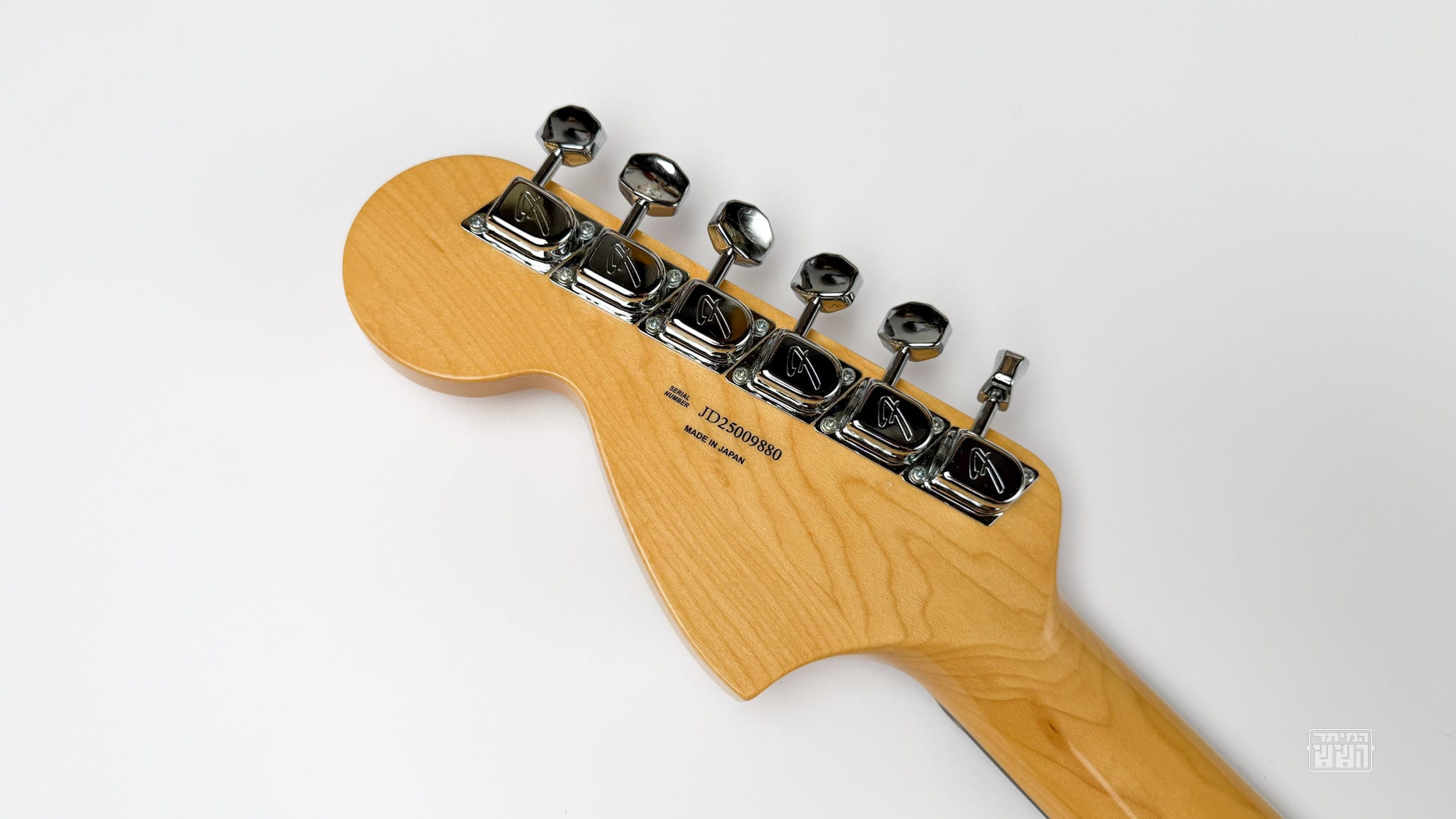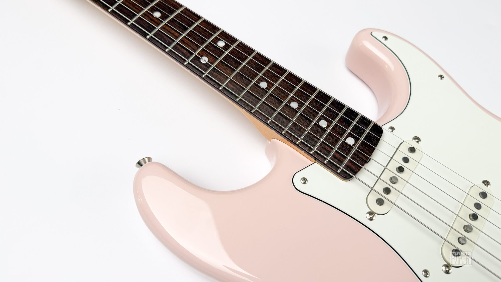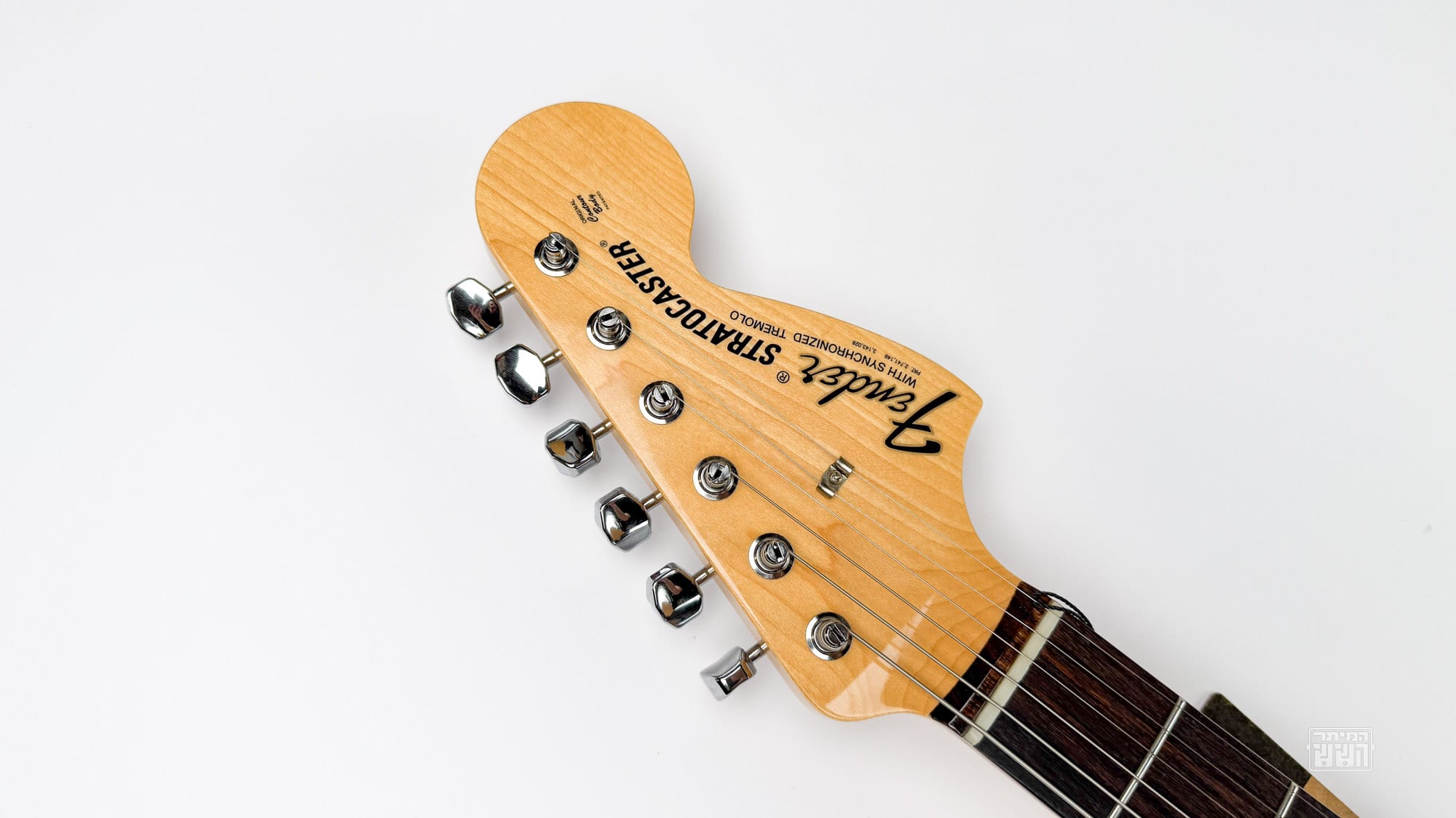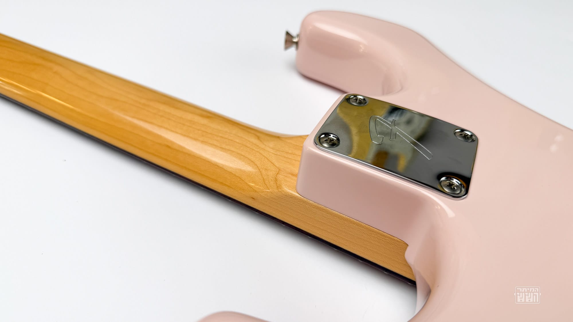 סטראט יפנית (יד שנייה) מסדרת ה-Traditional – שחזור של גיטרה משנות ה-60 המאוחרות (הדסטוק גדול) בצבע Shell Pink פסטלי ועדין – גרסת Fender Special Run בייצור ספציפי לחנויות יפניות