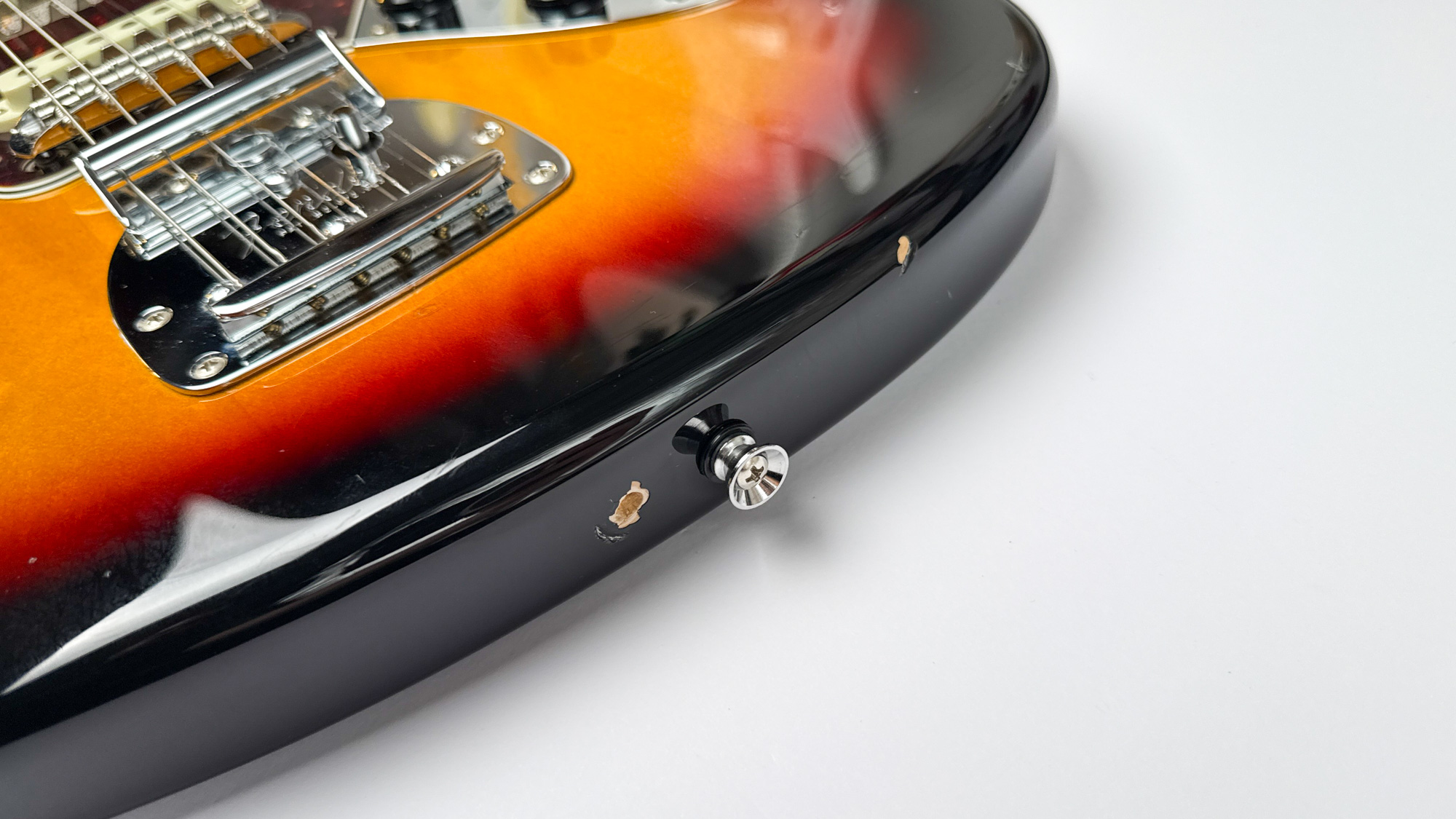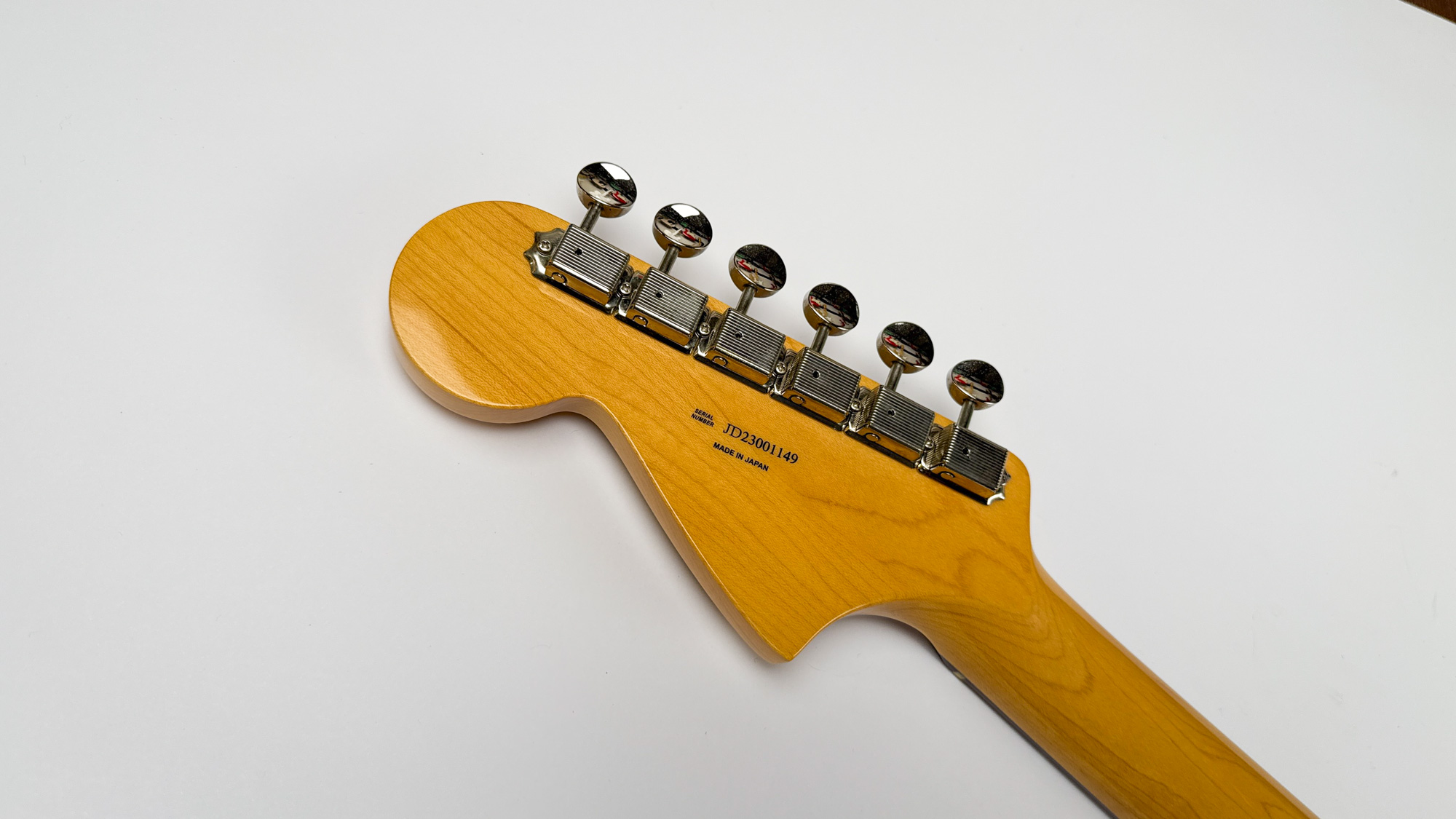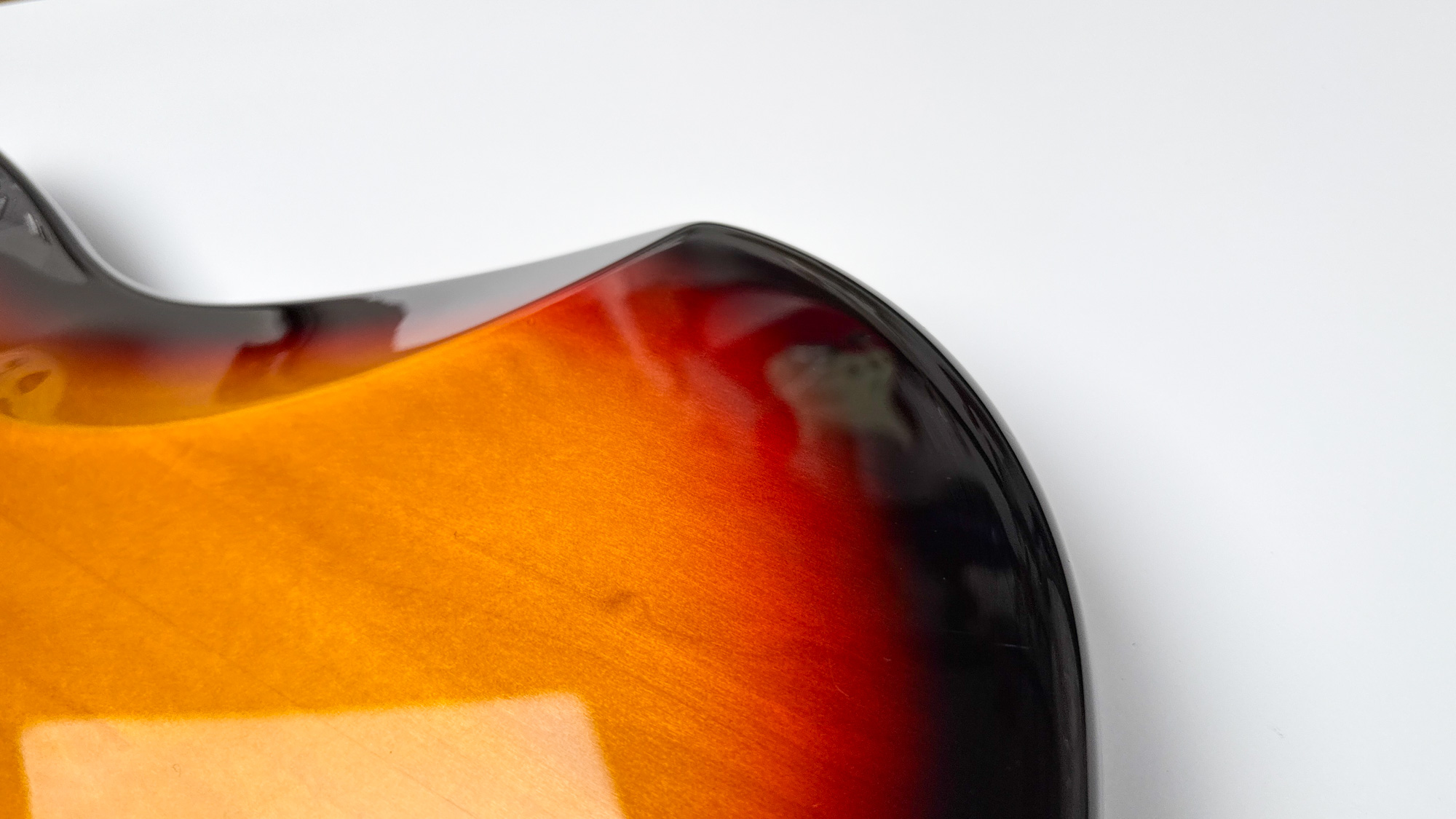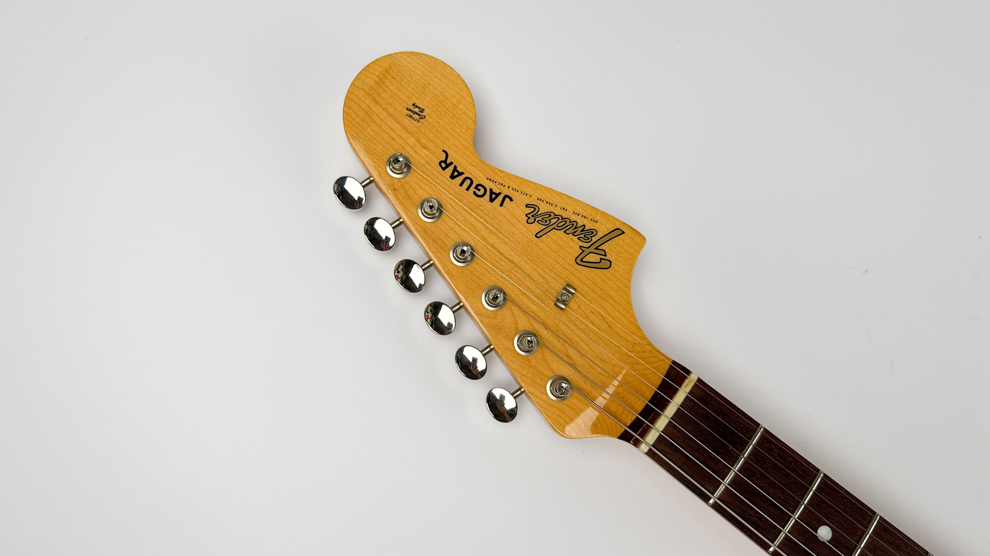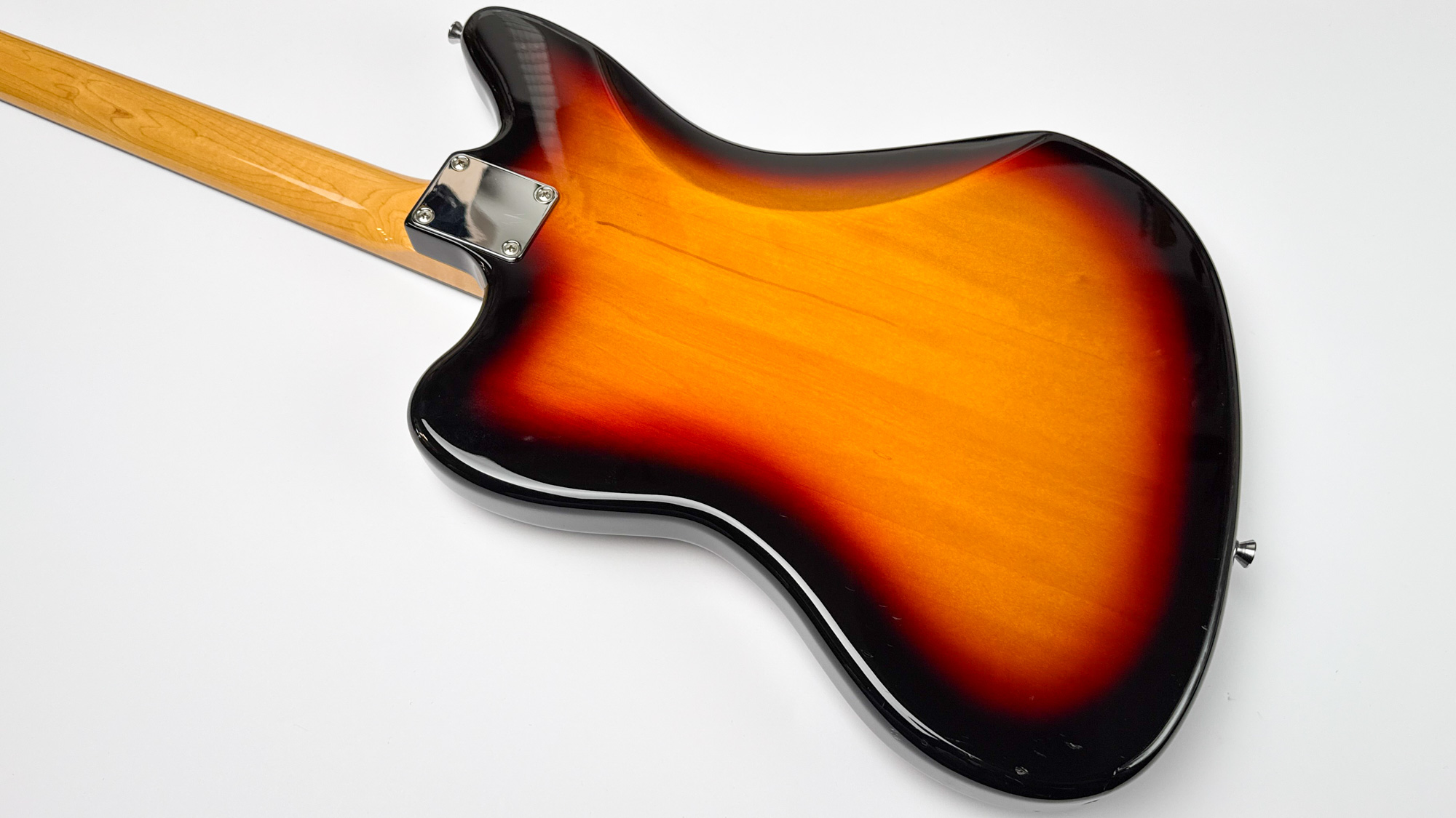 גיטרה יד שנייה – ראישיu ליגואר שנות ה-60 מבית פנדר יפן עם גימור סאנברסט קלאסי ופיקגארד שקשוקה.